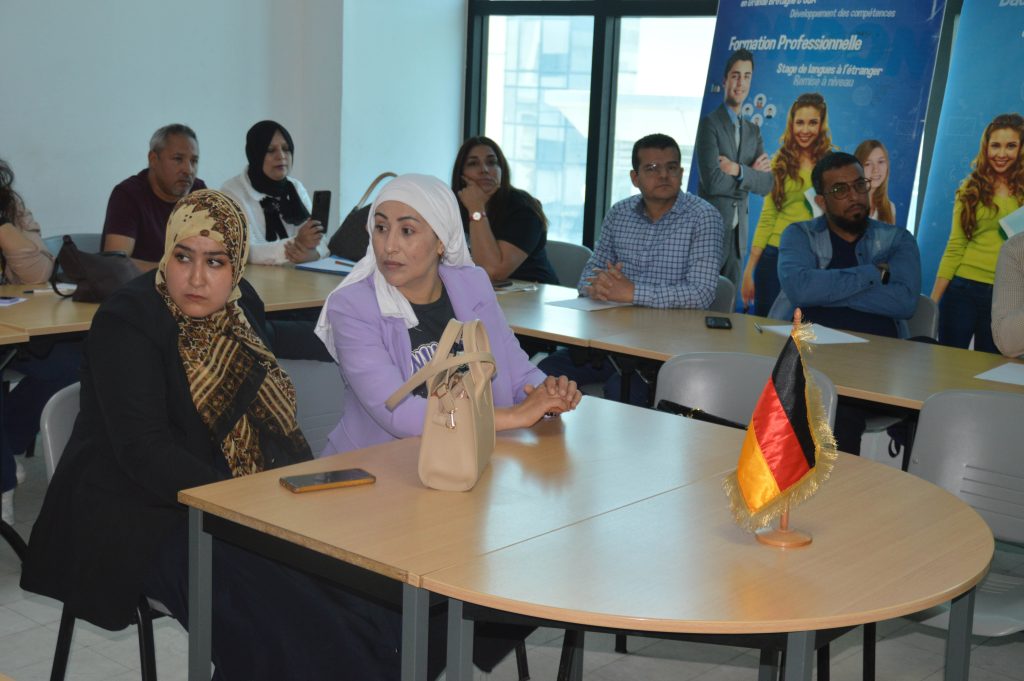 La réunion s’est déroulée dans une salle bien aménagée de notre centre linguistique, avec une disposition qui favorisait les échanges ouverts et constructifs. Les infirmiers ont eu l’occasion d’exprimer leurs préoccupations, de poser des questions spécifiques sur les processus de recrutement et d’immigration, ainsi que de discuter des défis potentiels et des opportunités de développement professionnel offertes par une expérience internationale en Allemagne.